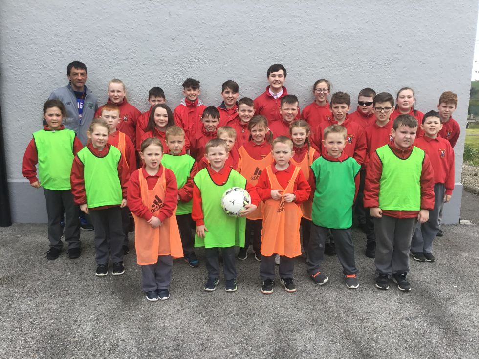 Football in schools has been played for many years but it's only in recent years that it has begun to develop rapidly in Primary schools. In recent years our senior classes have taken part in Five A Side football with local schools achieving great results. Over the past two years we have welcomed Euan Treanor who shared his knowledge and expertise with us while upskilling our soccer moves.